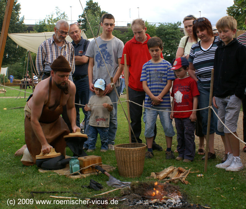 h10 - II. Römerfest in Obernburg: Die neuen, selbstgefertigten Blasebälge haben ihre "Feuerprobe" bestens bestanden.