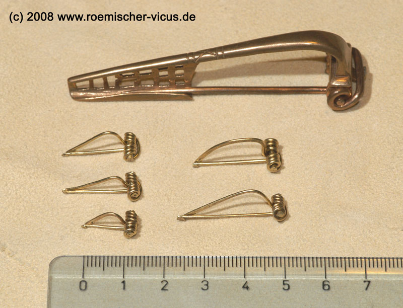 Im Hintergrund zum Größenvergleich eine gallische Fibel von H.Ratsdorf.